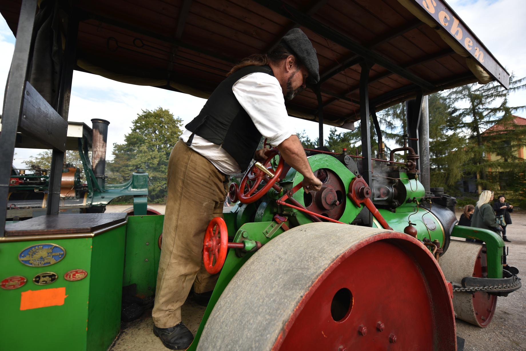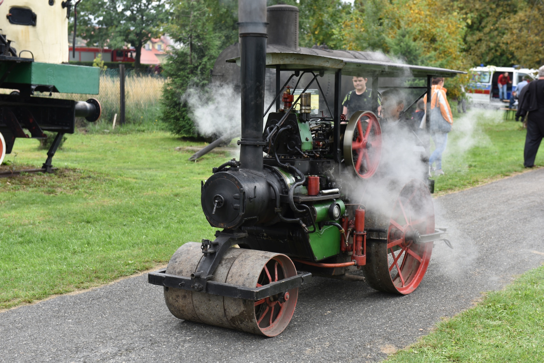 Areną dużych maszyn parowych był parking przy Skansenie Maszyn Parowych. Kilkadziesiąt maszyn zaprezentowało swoje możliwości – od wielkich walców drogowych: Aveling & Porter, Královopolská i Skoda, poprzez ciężarówkę Sentinel, traktor parowy i trzy niezwykłe samochody. Jeden z nich to kopia samochodu parowego z 1817 r. Stworzył go pochodzący ze Śląska Cieszyńskiego konstruktor i wynalazca Józef Bożek. Podziw budziły również mniejsze “cacka” – walce, traktory, rower parowy i wiele, wiele innych.