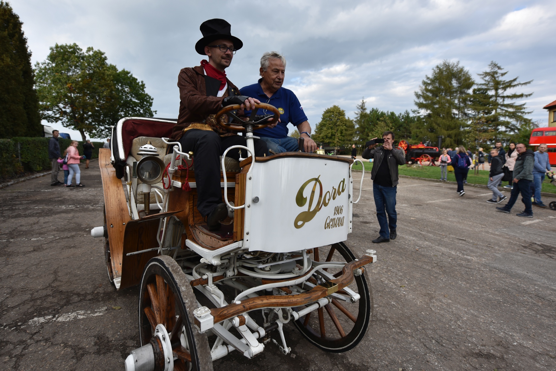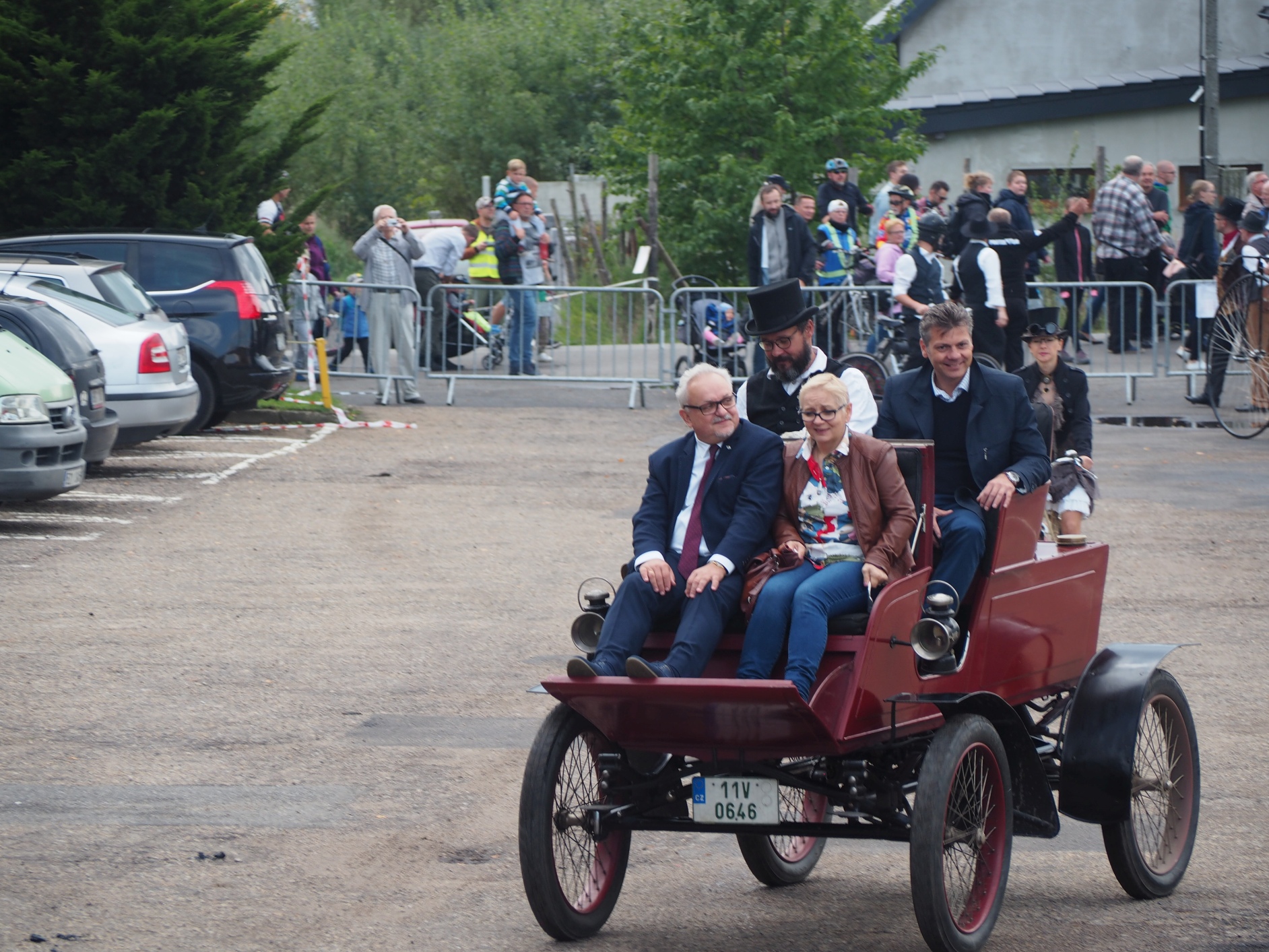 Wśród tłumu pasażerów – Burmistrz Tarnowskich Gór Arkadiusz Czech z małżonką, Prezydent Bytomia Mariusz Wołosz i Zbigniew Pawlak szef zarządzającego Kopalnią Srebra Stowarzyszenie Miłośników Ziemi Tarnogórskiej. Dwaj pierwsi panowie przesiedli się do niezwykłego pojazdu – samochodu parowego, wyprodukowanego w Stanach Zjednoczonych w 1902 r. Jak się dowiedzieliśmy – pojazd ten zamówił na swoje potrzeby sam Franciszek Józef I – cesarz Austro-Węgier. Z kolei Zbigniew Pawlak i Jego Zastępca Stanisław Karcz zajęli miejsca w kolejnym niezwykłym pojeździe – potężnym traktorze parowym, który ciągnął wóz z postaciami historycznymi i orkiestrą. Rozpoczęła się uroczysta parada, w której wzięły udział jeszcze ciężarówka parowa Skoda Sentinel i grupa Silesia Steampunk.