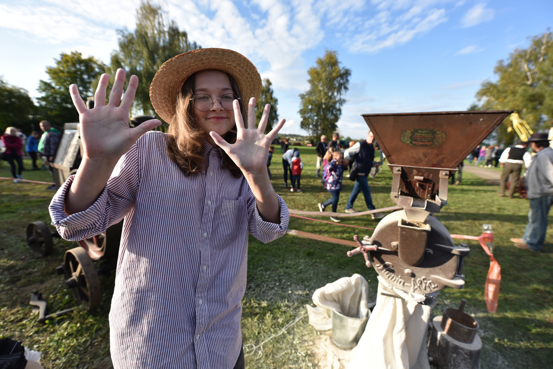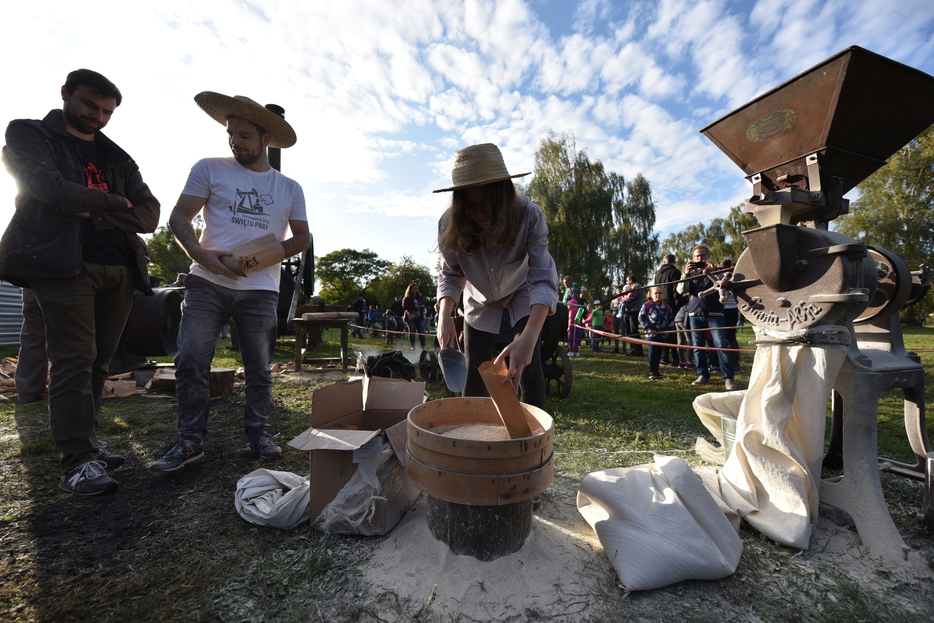 Tartak parowy pracował – oczywiście pełną parą. Podobnie śrutownik. Zmieliliśmy całe zboże. 300 kg. zmielonego żyta trafiło do specjalnych papierowych torebek z logo Święta Pary i z pieczątką „Mąka na Żur”. Tytki były rozdawane wszystkim chętnym.