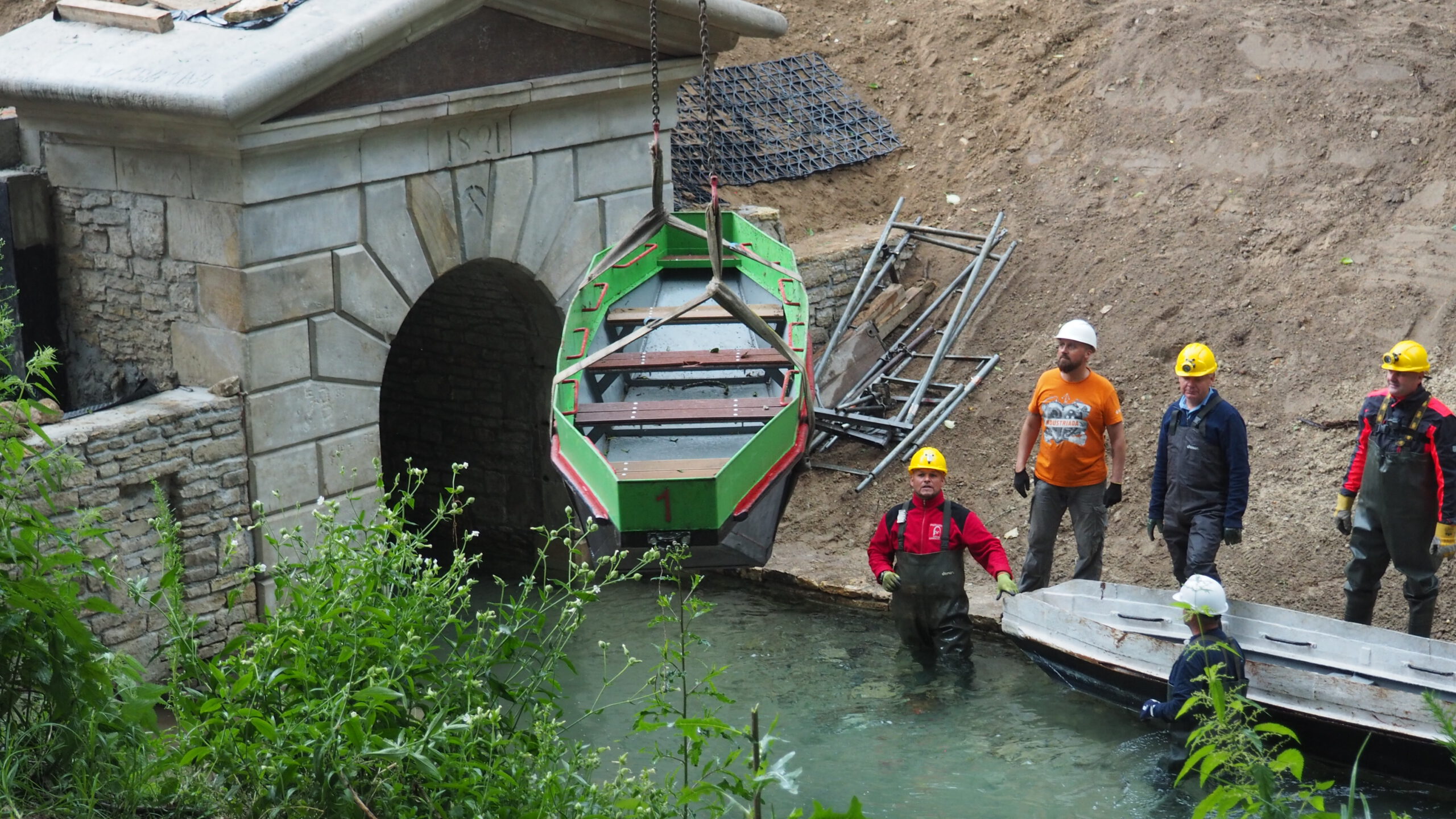 Firma Olmet, znana ze wspierania różnych inicjatyw lokalnych, umówiła się ze Stowarzyszeniem Miłośników Ziemi Tarnogórskiej, iż całą operację wymiany łodzi przeprowadzi całkowicie bezpłatnie, angażując swoje siły kadrowe i sprzęt. W całej operacji wzięli udział także członkowie Sekcji Penetracji i Ochrony Podziemi, a także Zarząd Stowarzyszenia Miłośników Ziemi Tarnogórskiej.