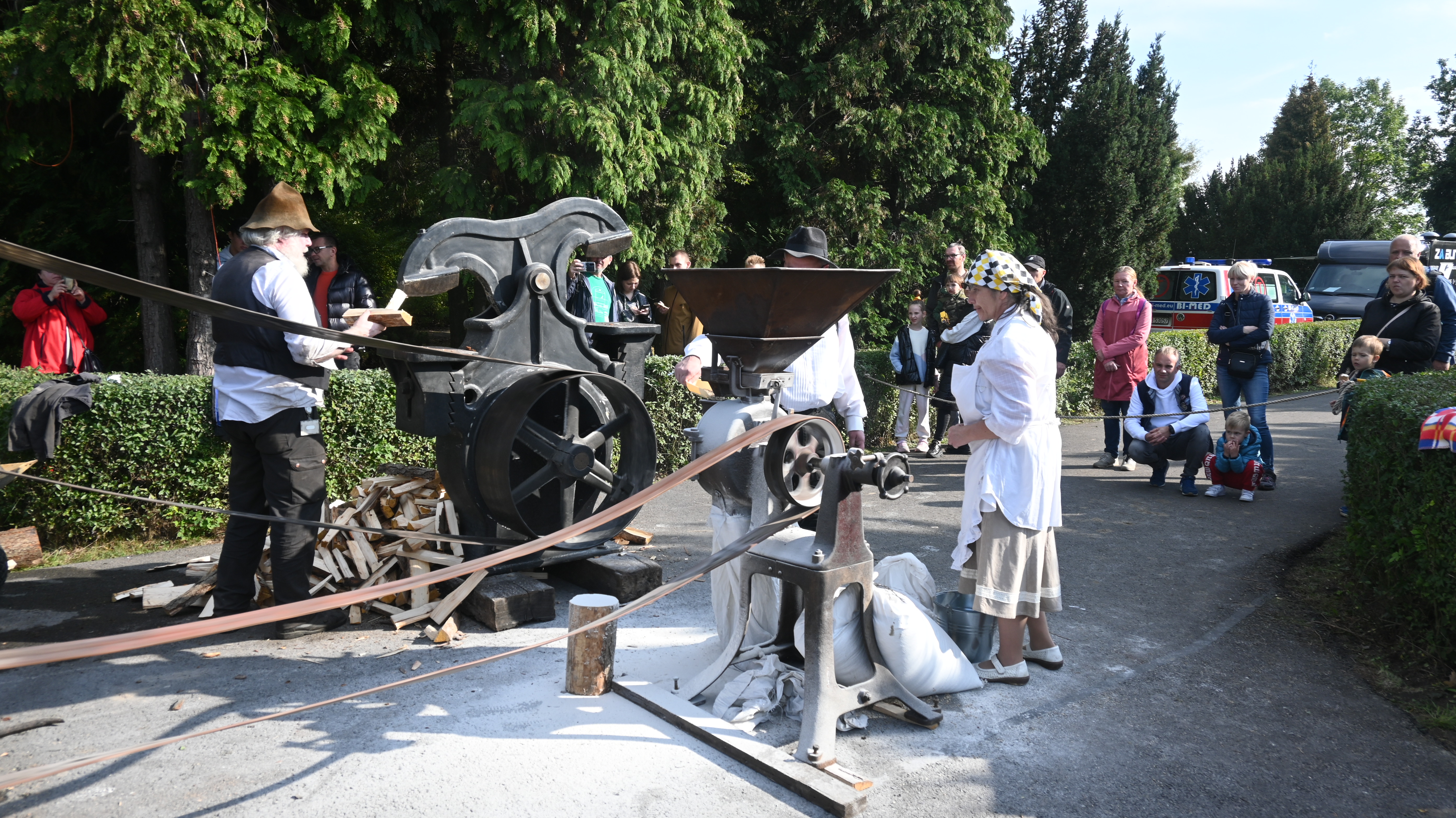 Zdecydowanie największą atrakcją festiwalu były pokazy maszyn parowych. Wśród kilkudziesięciu eksponatów znalazły się m.in. potężne walce, blisko stuletnia ciężarówka, lokomobile zasilające tartak, piła, młyn. mini walec i kursująca po torach mała lokomotywa parowa. Pojazdy oraz maszyny stacjonarne przyjechały do nas z Muzeum starých strojů a technologii (Muzeum starych maszyn i technologii) w Žamberku na północy Czech.